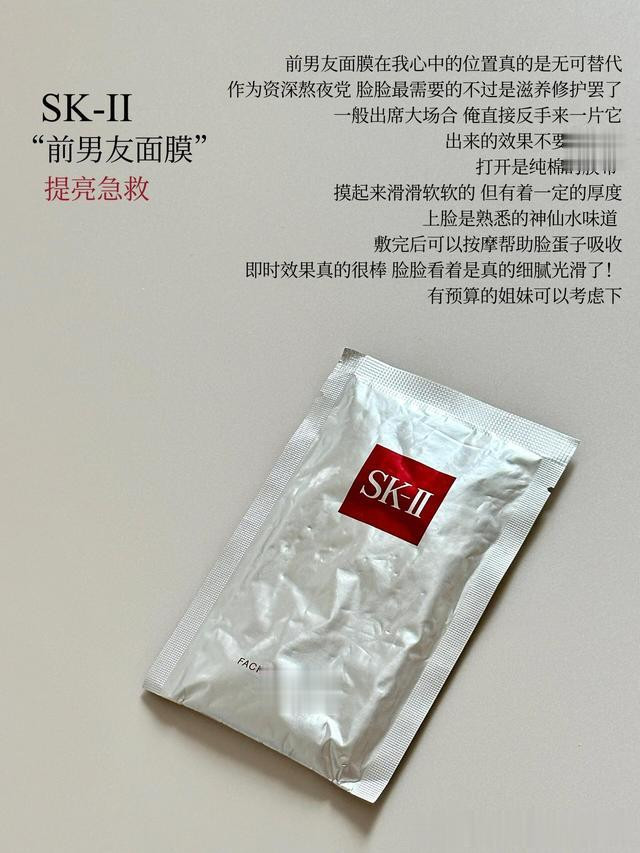 SK-II的前男友面膜因其神奇的急救效果而备受推崇。据说,一片面膜能让你的肌肤焕然一新,让你的前男友后悔不已。这款面膜的精华液非常丰富,用完后还可以用来涂抹颈部,不会浪费。